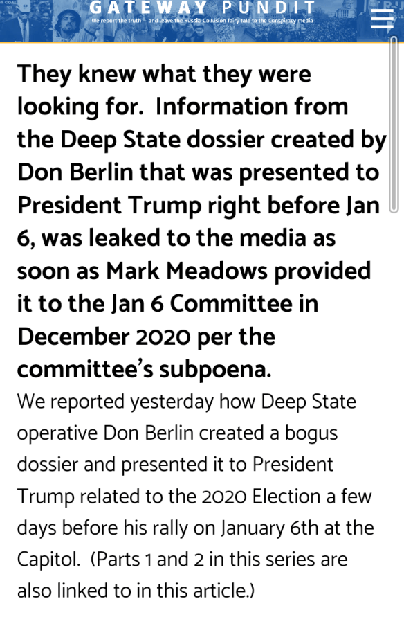 After reading the deeply factual 12-page Statement by President Donald J. Trump refuting in depth the jaundiced investigations of the so-called January 6th Committee, I draw just a few snippets to your attention: