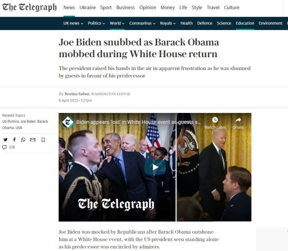 NB: The Telegraph, digital and paper versions, report what’s widely broadcast over the ‘Pond’: