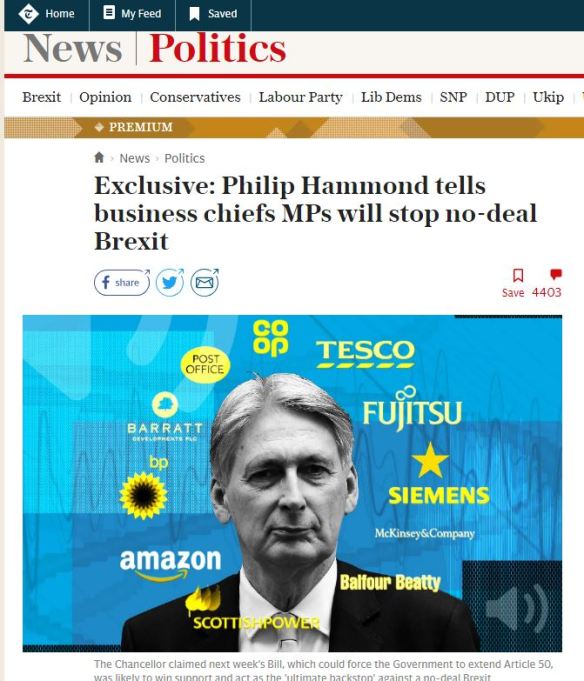 ‘It also plans to target MPs and convince them to vote against the final Brexit deal to trigger another referendum or general election, according to a strategy document leaked from a meeting of the group….’ [NB: ‘premium’ content, but one item/week may be accessed free-of-charge.]