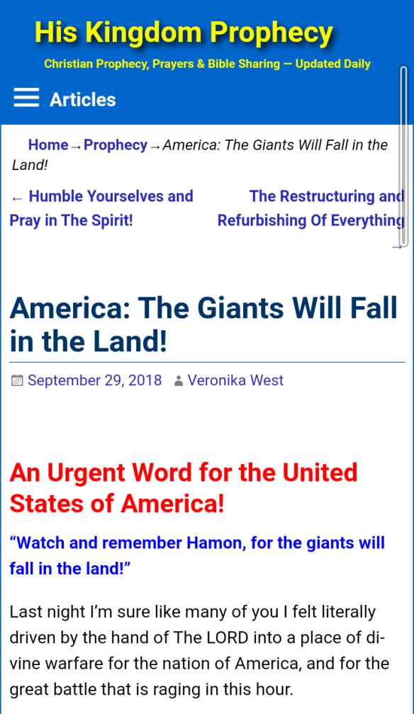 Moreover, there is comment about a prophecy given to Veronika West about Donald Trump – in opinionated British fashion muddied by mainstream media brainwashing! WHEN WILL THEY WAKE UP!