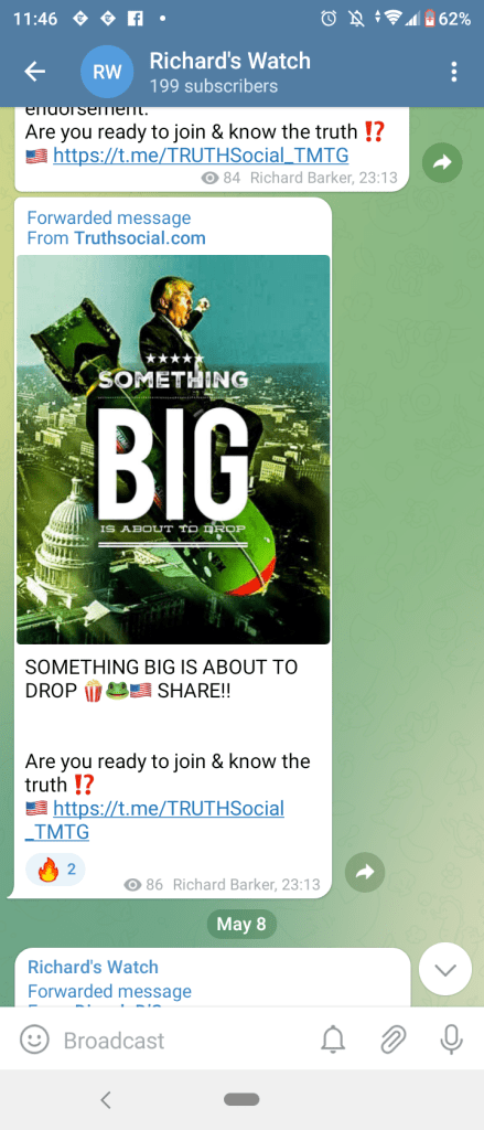 After answering my remarking, “I wonder, maybe in connection with planned launch of DJT’s social media platform Truth Social?” upon her “Mayday, Mayday!” Fbk post, dear Veronika added her reply as a Postscript to the original, and posted at HKP as: