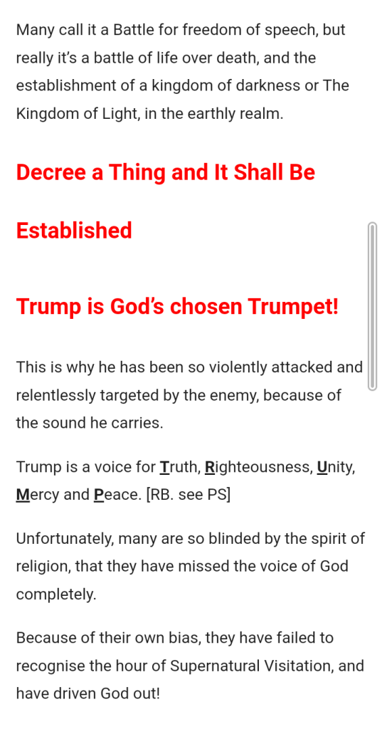 Trump is a voice for Truth, Righteousness, Unity, Mercy and Peace. [RB. see PS]
