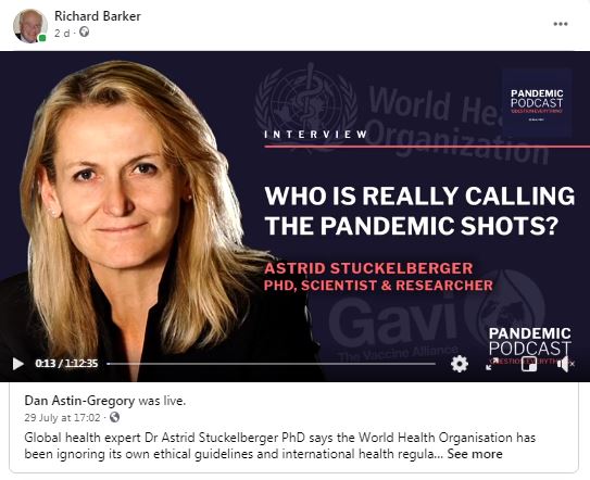 ‘I believe that this divide and conquer agenda of fear and alienation by forced lockdowns and forced masking is a clear grooming process that the world is being forced into in preparation for a much more sinister plot.’