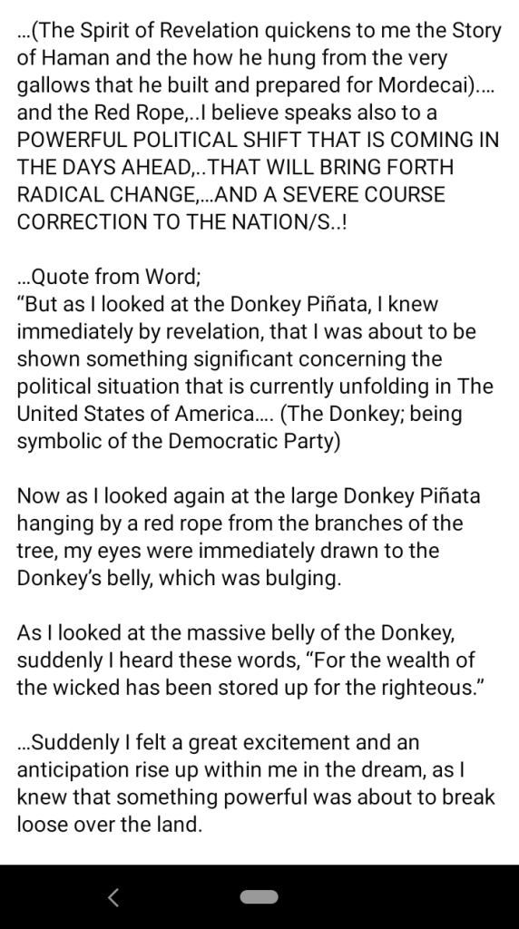 ”I believe that the donkeys and cockroaches are speaking at multi-levels. Prophetically I believe it speaks to two specific types of powers and principalities at work in this hour and yet again, I believe it also speaks symbolically at another level.