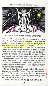 Having Catholic parents, it was church every Sunday. As soon as I was able to read, my mother showed me how her Missal explained what’s said during Mass. Each Sunday had a page with picture depicting the liturgical theme, as in this copy page.