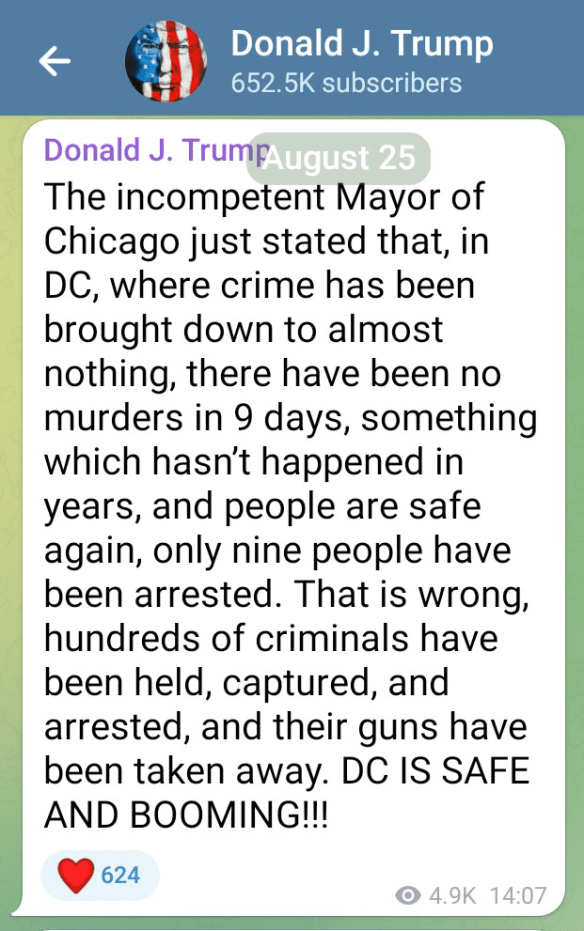 Next, on 11th August President Trump began a clean-up of Washington DC crime also by the solution of that Equation; the equivalent of martial law. Apparently, plans are already in place for Chicago next.