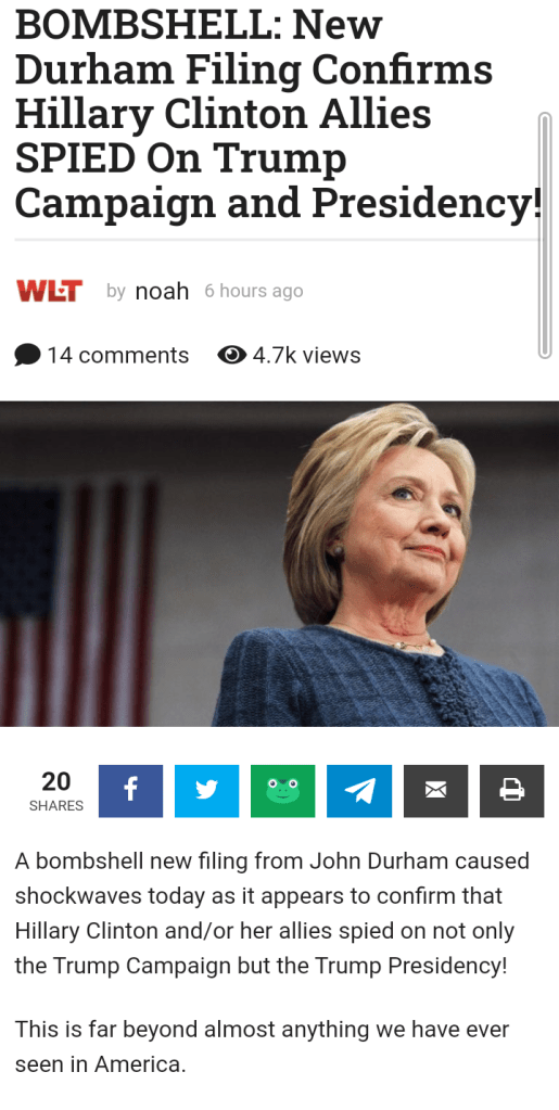 ‘I am grateful to my friend Richard Barker for re-posting this article on his website. He did so by way of it being a gentle introduction to some of the startling revelations that appear to be coming out of the Durham investigation, he posts on, e.g. “Former Italian PM Renzi and the Italian Deep State worried about Durham’s Investigation into the Russiagate sham – GTP & Cesare Sacchetti“. As I look at some of the alternative media, e.g. Bitchute, it is becoming a regular experience to come across reporting that relates to what this investigation is unraveling, including attempts to cover up criminal activity and silence whistle-blowers, e.g. “BREAKING! NEW Durham Developments! HRC, Podesta, Comey & McCabe No Immunity! No Deals! No Mercy!