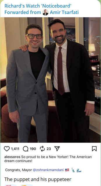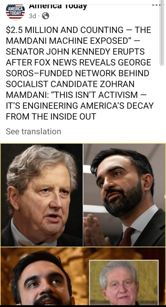 After the UK-related news link in Part 2 the remainder on Senator Kennedy’s actions may have seemed disjointed with that against George Soros sandwiched between that on president Obama and on New York’s mayor-elect Mamdani. Most of my 70 #Soros tagged posts on this blog cover his Obama connection and we’ll read the connection with Mamdani below.